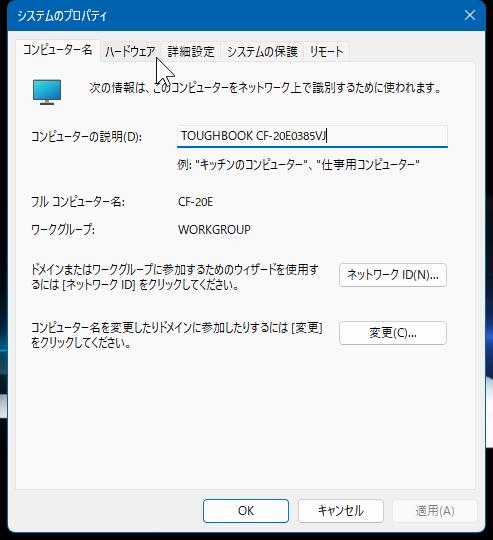 その後、システムのプロパティは右上の「×」で閉じておK。